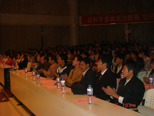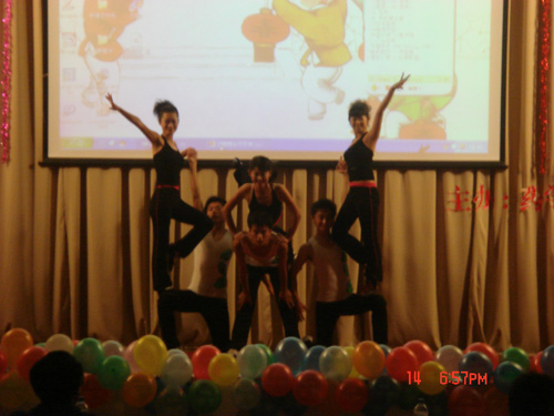 喜迎十七大 迎新晚会在建筑系报告厅隆重举行。参加此次晚会的有唐书记、辅导员李江老师、张子良老师,各班班主任、07级新生及来自滨州医学院的朋友们。晚会在一段极富激情,动感十足的韵律操后正式拉开帷幕。