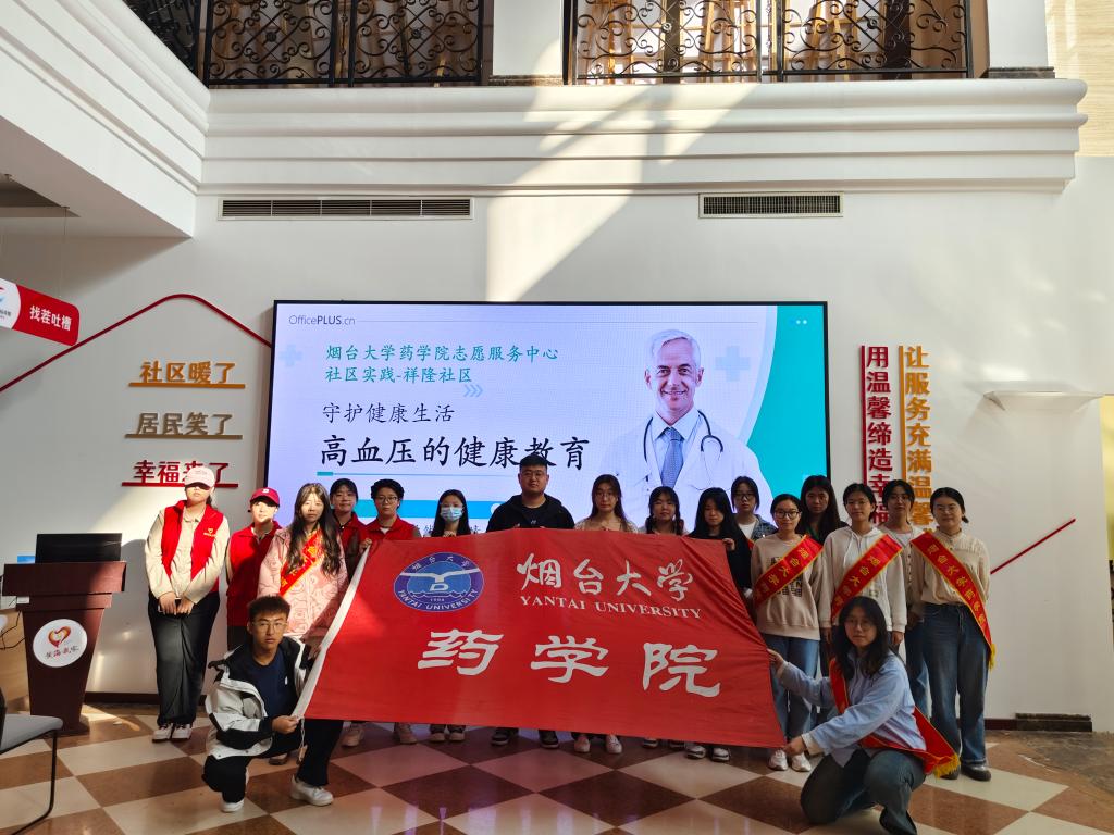 为全面提高青年学子的综合素质,培养药苑学子的基层服务意识,增强居民对高血压的预防意识和应对能力,独播库 志愿者代表于10月28日上午前往莱山区祥隆社区进行血压测量及知识讲解活动。本次社区实践由志愿服务中心社区实践部组织,参加本次活动的有2022级辅导员刘姚及独播库 志愿服务中心志愿者团队。
