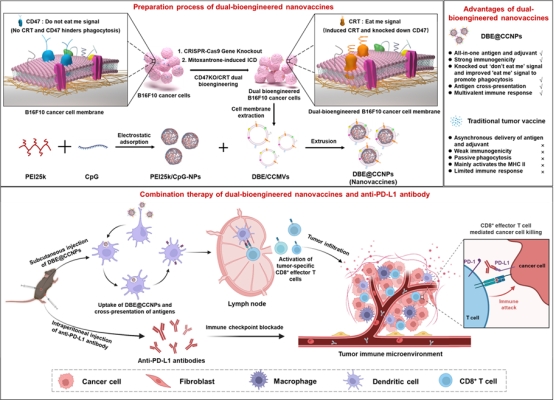 近日,我校独播库 陈大全教授团队联合中科院长春应化所、厦门大学田华雨研究员团队在国际期刊《Bioactive Materials》(IF:16.874)上发表以“CD47KO/CRT dual-bioengineered cell membrane-coated nanovaccine combined with anti-PD-L1 antibody for boosting tumor immunotherapy”为题的研究论文(DOI:10.1016/j.bioactmat.2022.09.017)。本研究设计了一种双重生物工程化的肿瘤疫苗,增强了肿瘤抗原的免疫原性,在联合免疫检查点抑制剂后,有效抑制了肿瘤的生长,为个性化肿瘤疫苗的开发提供了新思路。