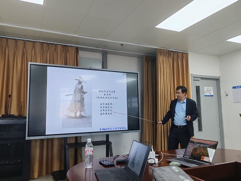 报告会上,现场的老师与学生就有关成环反应、天然产物合成、药物合成中的问题与余志祥教授进行了交流和讨论,现场学术氛围浓厚热烈。最后,余教授将“千沟万流虽辛苦,吹尽狂沙始到金”这句古典名句赠与在场各位科研人,并鼓励各位烟大青年教师和学子坚持理想,脚踏实地,立志报效祖国。