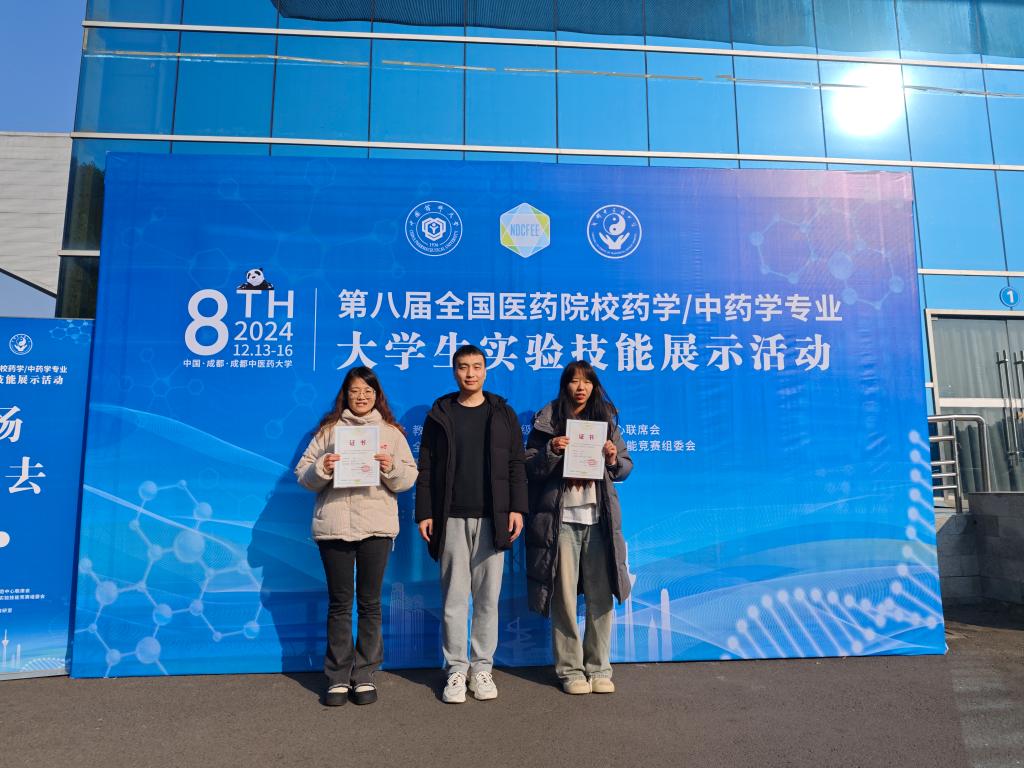 2024年12月13—16日,由教育部高等学校国家级实验教学示范中心联席会、全国药学类院校大学生专业技术与实验技能竞赛组委会、教育部“药学课程”虚拟教研室和中国药科大学共同主办,成都中医药大学承办的“第八届全国医药院校药学/中药学专业大学生实验技能展示活动”在四川省成都市隆重举行。药学院派出由刘宗亮、杨刚强、杜源为指导教师,学生冯敏、陈羽彤为成员的代表队。