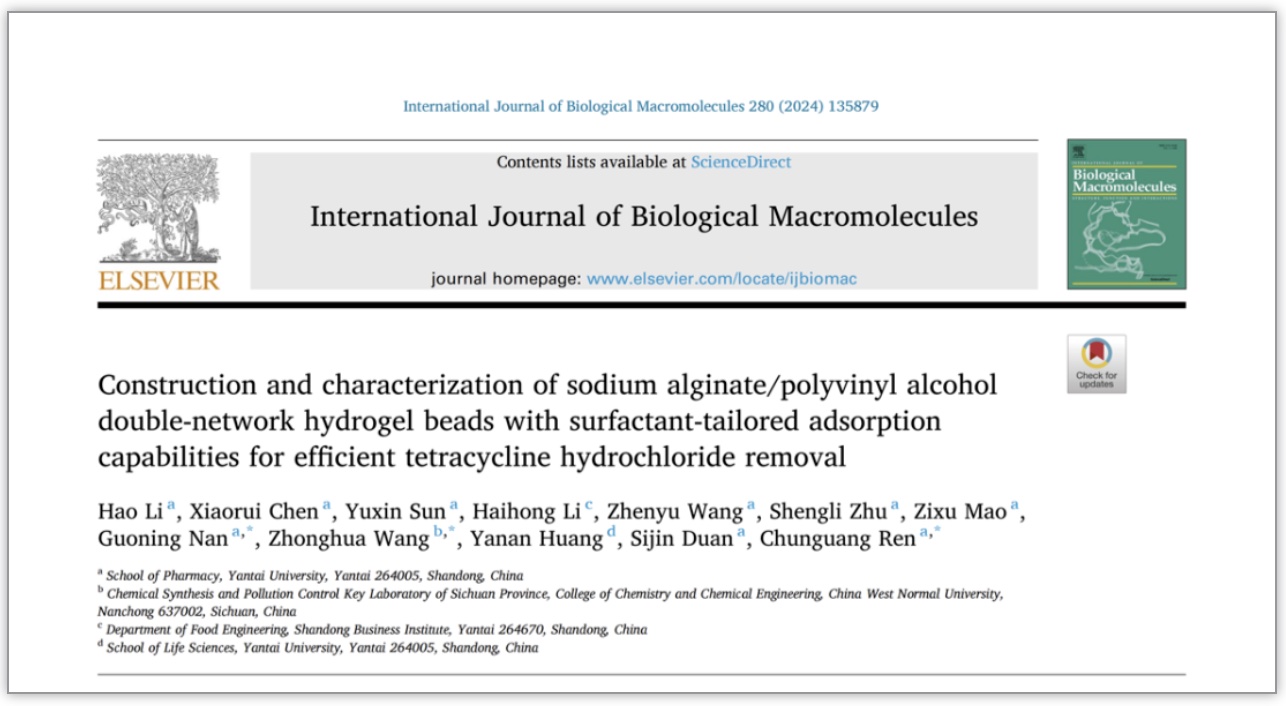 共有9名学生发表多篇高水平论文。其中,2021级本科生科研团队在任春光老师指导下取得重要研究突破,李浩、张素素等7位同学分别以第一作者身份在国际权威期刊《国际生物大分子杂志》(International Journal of Biological Macromolecules)(中科院TOP,IF 8.5)发表系列研究论文,展现了出色的科研创新能力。
