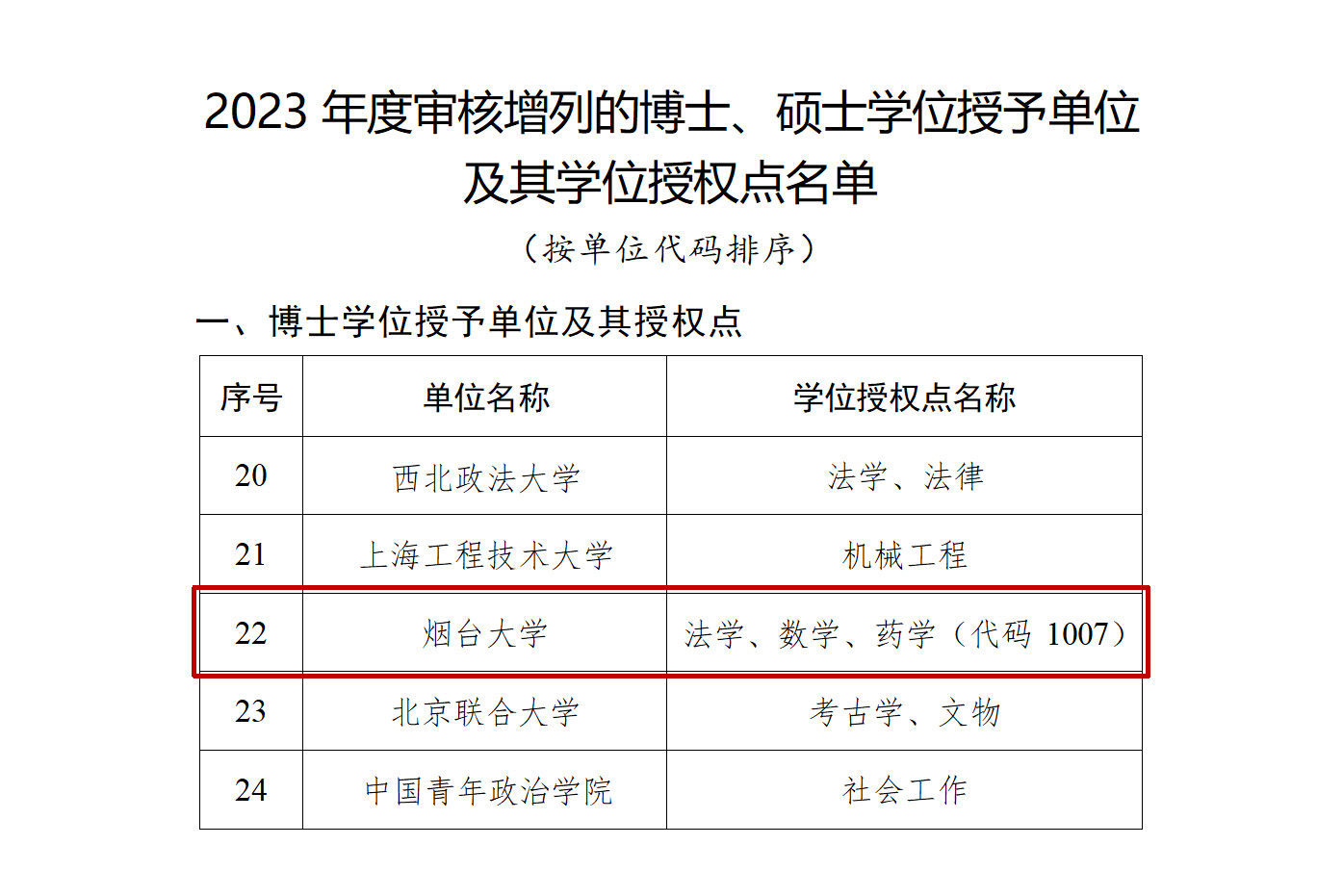 近日,国务院学位委员会办公室发布了《新增博士硕士学位授权审核专家核查及评议结果公示》,包括新增学位授权自主审核单位,新增硕士、博士学位授权点以及授予单位。独播库 获批博士学位授予单位,药学学科获批一级学科博士学位授权点。